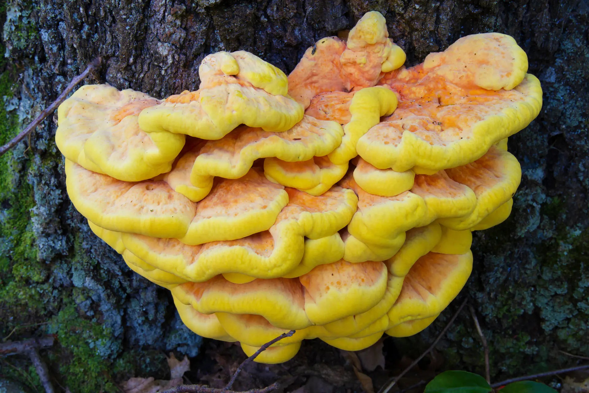 Now that we have thoroughly scared you away from eating Chicken of the Woods, let’s talk about how amazing it is and how you totally want to try it. At its best, COTW is like the McDonalds of the mushroom world. Pudgy and tender, with colors ranging in an appetizing gradient from French fry yellow to deep fried orange, they look so good you’d want to take a bite of them right off the side of the tree (don’t do this; even at their best, they must be thoroughly cooked). Their texture is so much like a succulent cut of white chicken breast, you could truly frighten a vegan with it. They have citrusy overtones, like a bird stuffed with fresh lemons and roasted.