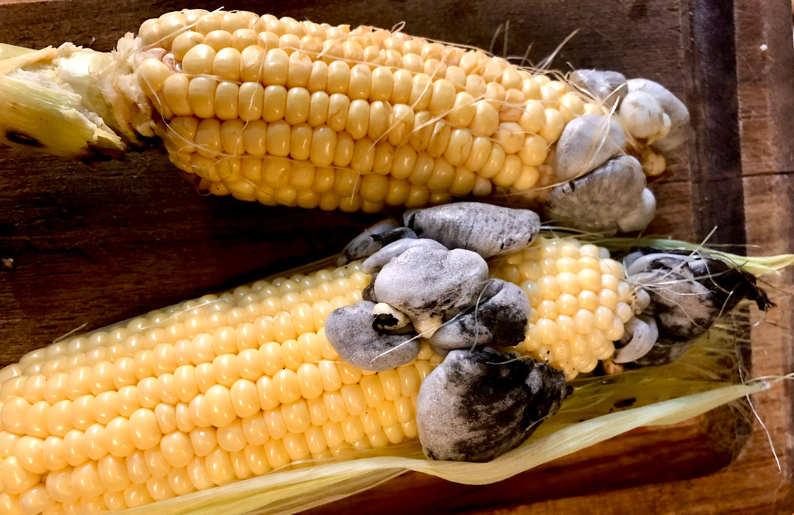 It must have taken quite a leap of faith for the first person to try this gruesome aberration that ravages the most essential and sacred of New World food crops. The early Aztecs, Tlaxcalans, and Central Mexicans had a good sense of humor, when they gave Huitlacoche a name that translates to “excrement of the gods.” In the United States, “Corn Smut” is still largely an enemy of the corn farmer – a ruinous blight to be quarantined and destroyed. Or perhaps furtively harvested, kept in the back of the Farmer’s Market stall under burlap, and offered only by request, like a mystical artifact with dangerous powers.
