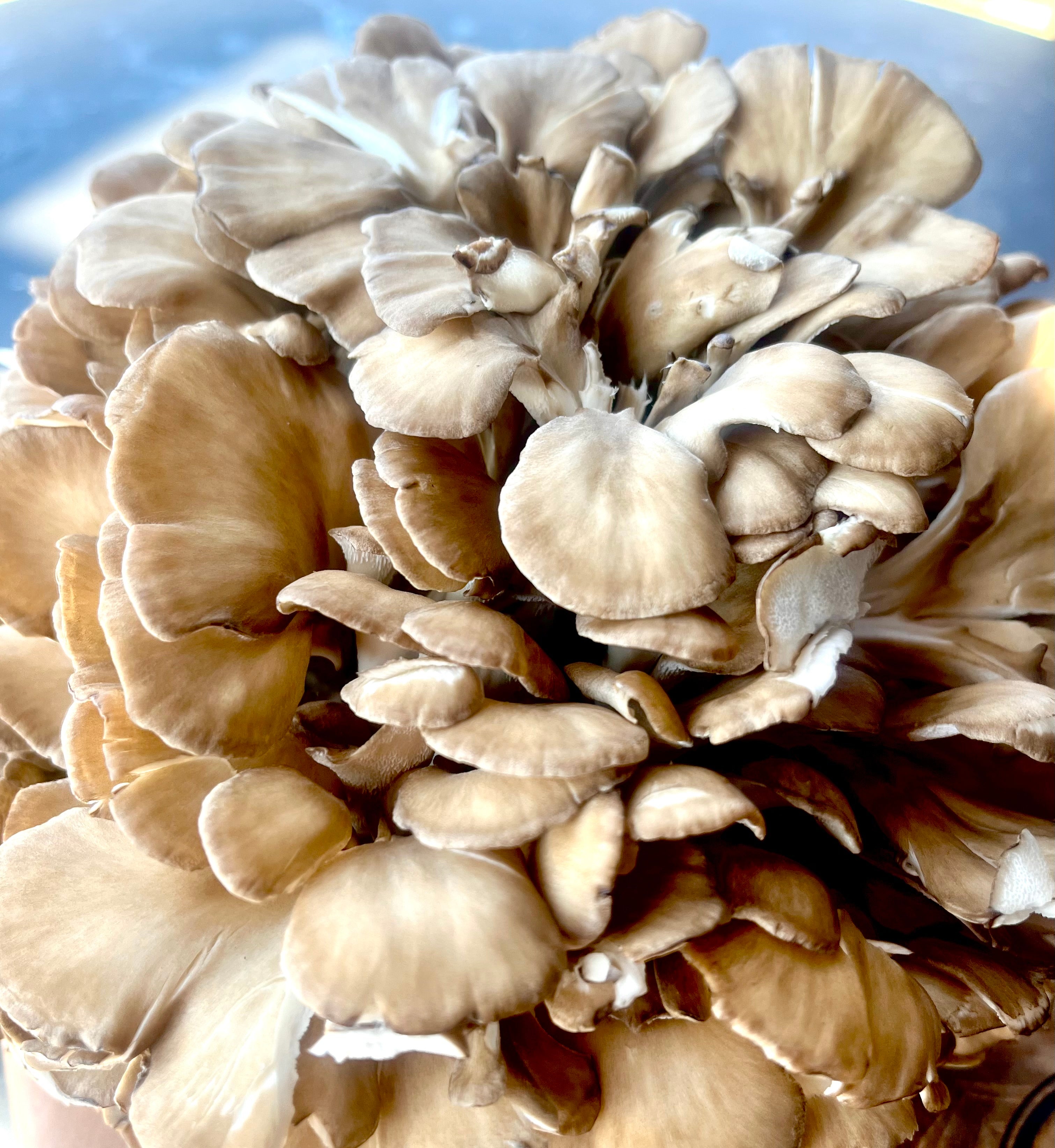 The first thing most people notice about Maitake (Grifola fronderosa) is that it doesn’t really look like a mushroom. It grows in rosettes of dove-grey, softly striated petals, blooming in clusters, and looking more like a woodsy carnation than a fungus. This appearance has given Maitake its colloquial name, “Hen of the Woods,” because it looks, well... like a bunch of chicken feathers growing in the woods. The name “Maitake” is Japanese in origin, and translates to “dancing mushroom.” This could come from the fact that the intricate petals appear to dance when the mushroom is jostled, or from the fact that foragers are observed to dance with joy upon finding one.