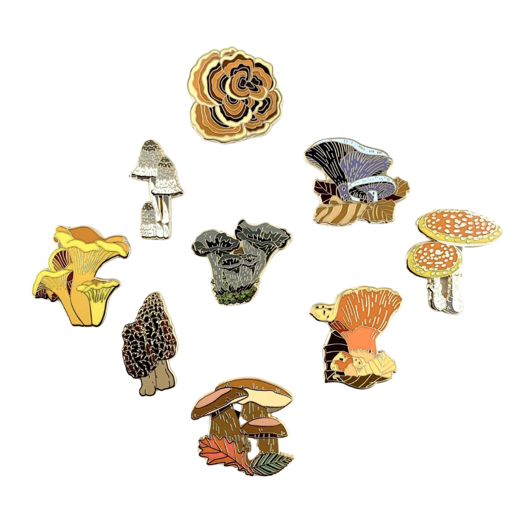 Handmade - Stunning Assorted Mushroom Pins from Birch Brothers