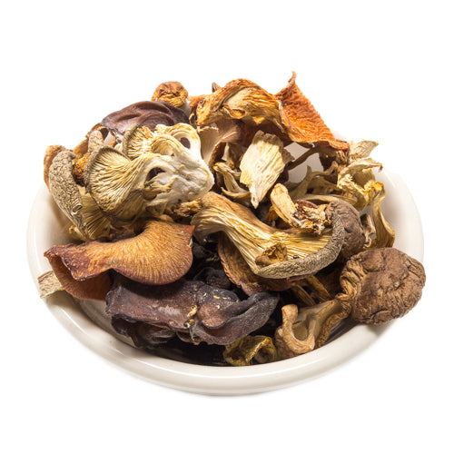 Dried mushrooms can be reconstituted in any kind of warm liquid (wine, broth, cream, etc.) for 15 - 20 minutes, and then used in any application in which fresh mushrooms are called for. Try them as a base for soups and sauces, combine with eggs in a scramble or omelet, cook into a risotto, or toss with pasta.