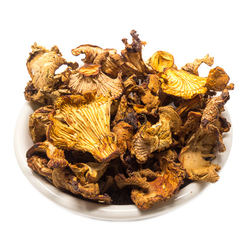 Chanterelles have a delicate fruity aroma that brings to mind soft cheese and fresh apricots. They are a staple in European cuisine from France to Germany, Poland to Russia, where they are a beloved component of many traditional home-cooked hearth meals. Dried chanterelles pair well with wild game, rustic stews, gravies, and souffles.