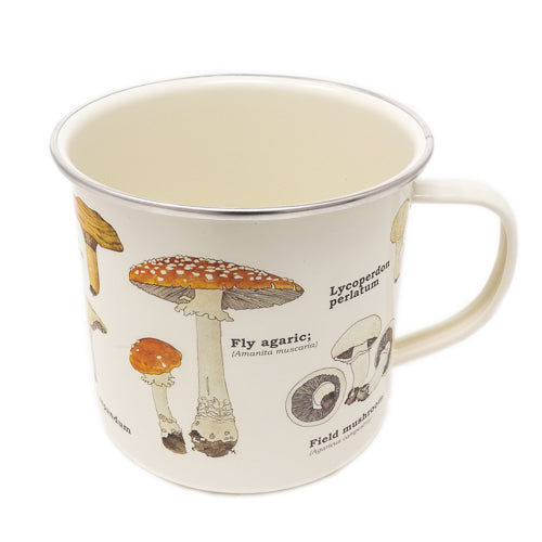 Classic images of popular wild mushrooms illustrate this sturdy enamel mug. Any camper or forager's campfire companion. Durable for the field, but not suitable for microwave or dishwasher use.