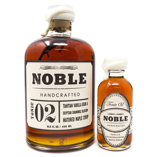 The delicate, floral & fruity aroma of the Tahitian vanilla bean is one of those classic culinary delights. Likewise, the buttery & floral apple-like flavor of Egyptian Chamomile Blossoms help to create a delicate balance of flavor & aroma for this unique maple syrup. NOBLE Tonic #2 is fruity and floral with just a hint of vanilla. It’s the perfect accompaniment to any breakfast table. Try it on your fruit yogurt and granola, or with your favorite pancake or crepe. Net weight 60ml or 450ml