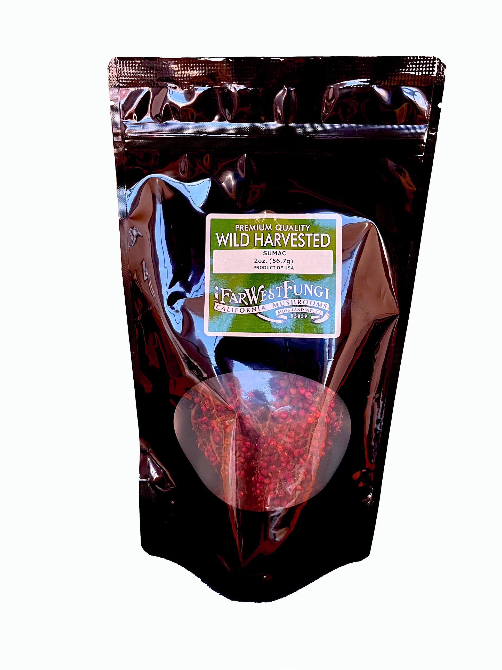 Most commercial Sumac is sold in powdered form. Our wild foraged Sumac berries are still on the brush, to preserve the natural beauty of the plant. They are easily removed, and can be ground to your desired consistency in a mortar and pestle. You can also use the berries whole if you’re infusing them in syrup or alcohol. Or rub them directly onto meat or fish to transfer the fine red powder.